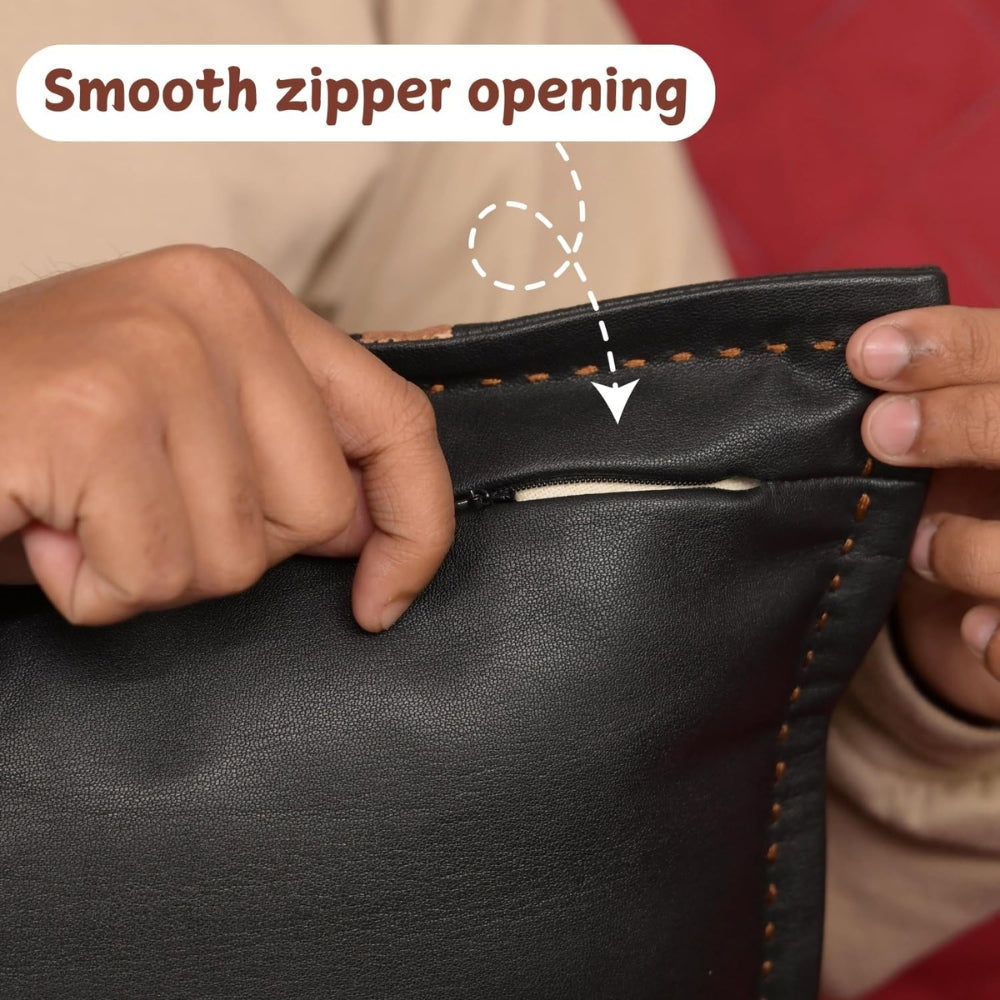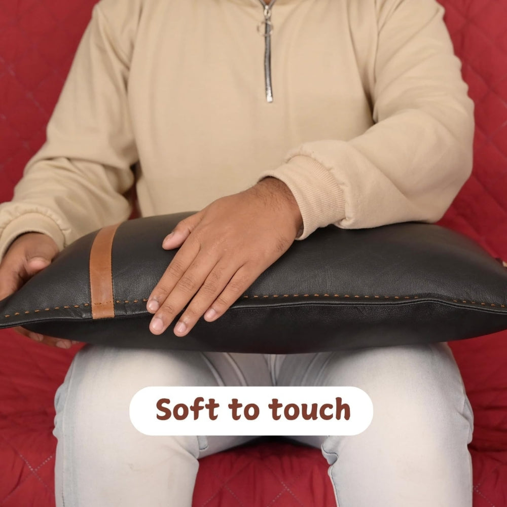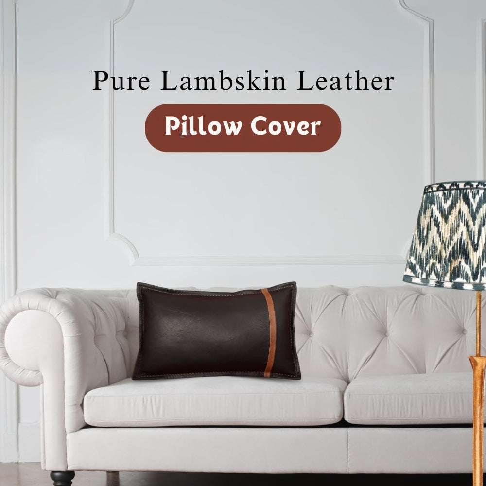 Genuine Lambskin Leather Lumbar Pillow Cover (Black & Tan)