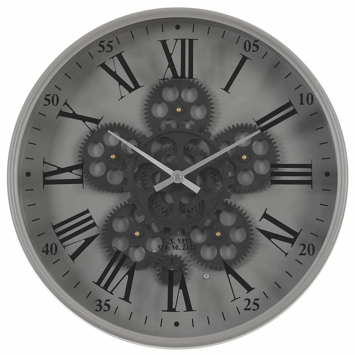 NEW Baron US Navy Grey Metal Moving Gears Wall Clock