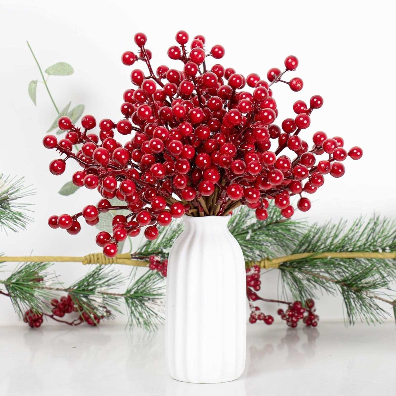 Elevate your home and holiday decor with these exquisitely crafted realistic red berry stems. Designed to mimic the vibrant beauty of natural holly berries, these artificial picks are perfect for a variety of DIY crafts, festive arrangements, and seasonal decorations. Easily integrate them into wreaths, garlands, Christmas trees, or use them to add a pop of color to any room. Their lifelike appearance ensures long-lasting charm for the entire holiday season and beyond.